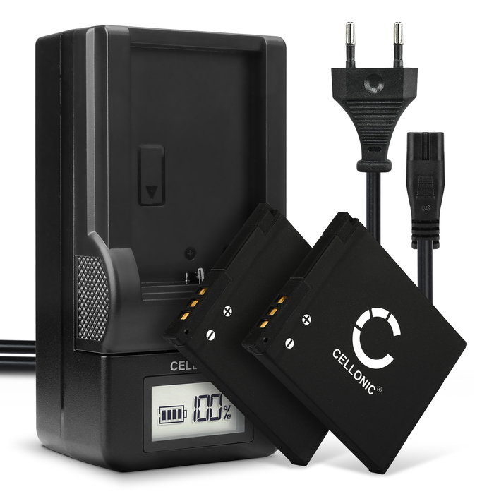 2x Akku + Laturi kameraan Panasonic Lumix DMC-SZ3, Lumix DMC-SZ10, DMC-SZ9, DMC-SZ8, DMC-XS1, DMC-FS50 - DMW-BCL7 DMW-BCL7e (600mAh, 3.7V) tuotemerkiltä CELLONIC