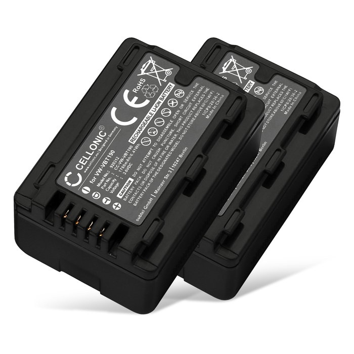 2x Akku kameraan Panasonic HC-V180 V10 V100 V160 V270 V380 V500 V777 V800 HC-VXF990 HC-VX980 - VW-VBT190 (1780mAh, 3.6V) tuotemerkiltä CELLONIC