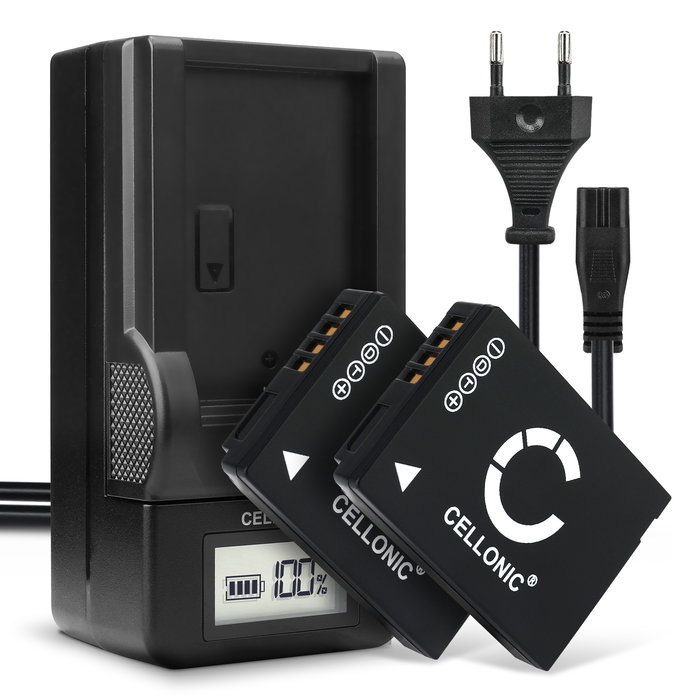 2x Akku + Laturi kameraan Leica V-LUX 20, V-LUX 30, V-LUX 40, Leica 18701, 18702 - BP-DC7 (890mAh, 3.7V) tuotemerkiltä CELLONIC