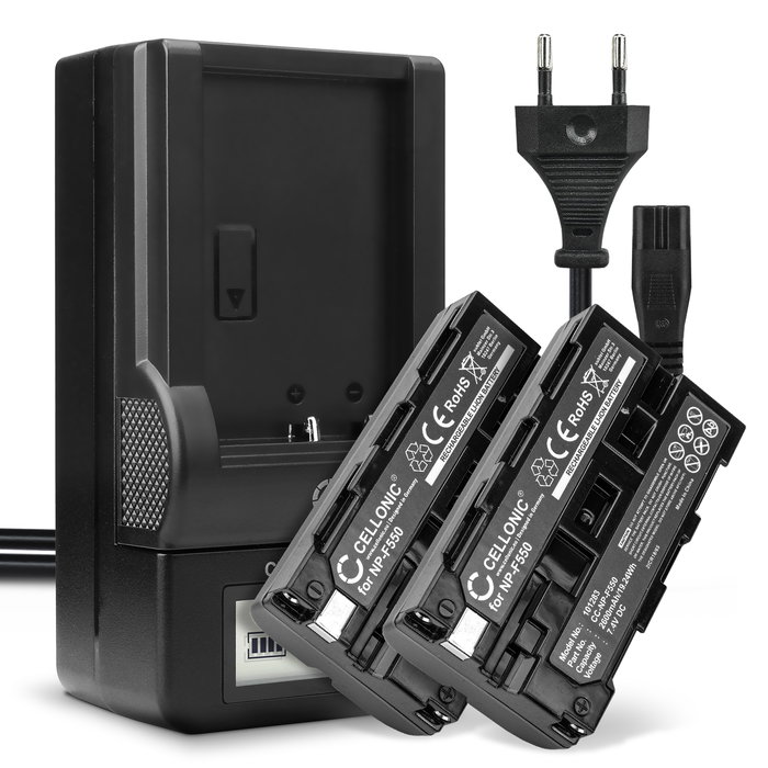 2x Akku + Laturi kameraan Sony HDR-FX1000E, HDR-FX7E, NP-F330, NP-F730, NP-F950, AC-SQ950D, BC-VM50 - NP-F550 F330 F750 (2600mAh, 7.4V) tuotemerkiltä CELLONIC